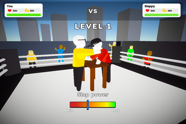 In Just Slap It!, it's all about timing. Each match puts your reaction speed to the test as you engage in slap battles against a variety of opponents. A well-timed slap can be the difference between victory and defeat, so stay focused, keep your hand steady, and strike at just the right moment to out-slap your rivals!