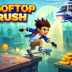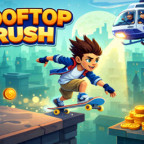 Rooftop Rush is a 2D endless runner where you skate across rooftops while trying to escape the police. The screen keeps moving forward, and you have to keep up. A police helicopter follows you the whole time, so stopping means getting caught.