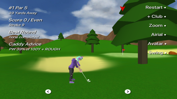The game features an 18-hole course that can be completed in minutes, making it perfect for short bursts of gameplay. A helpful caddy provides guidance, allowing players to focus on their shots. Whether you're a seasoned golfer or a casual player, Speedy Golf offers a fun and accessible way to enjoy the game.